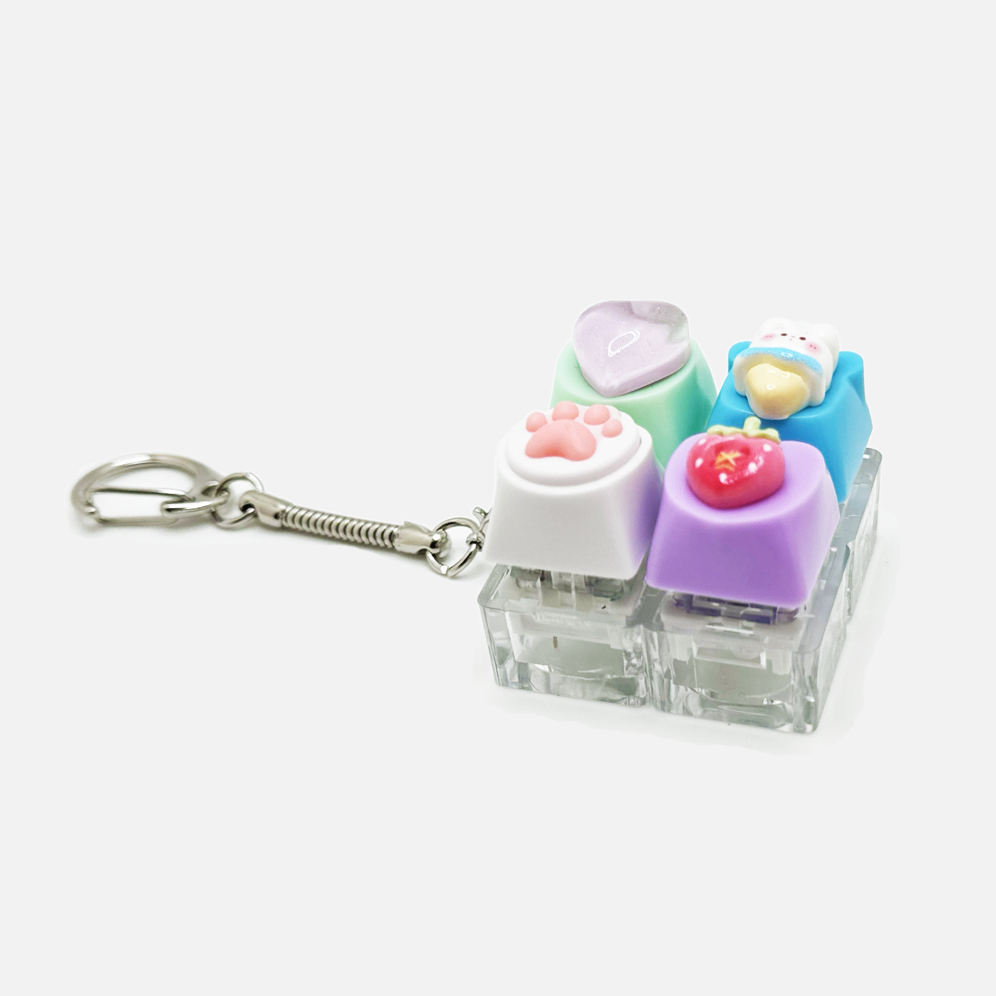 4 Keycap Keychain (Heart, Bunny, Paw, Strawberry)